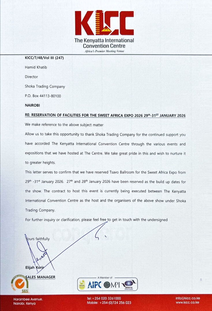 With producers from 17 countries showcasing their products to the East African market, which has a population of over 360 million people, the Sweet Africa Expo 2026 will be held from January 29 to 31 at the KICC International Exhibition Center in Nairobi — a truly exceptional opportunity.